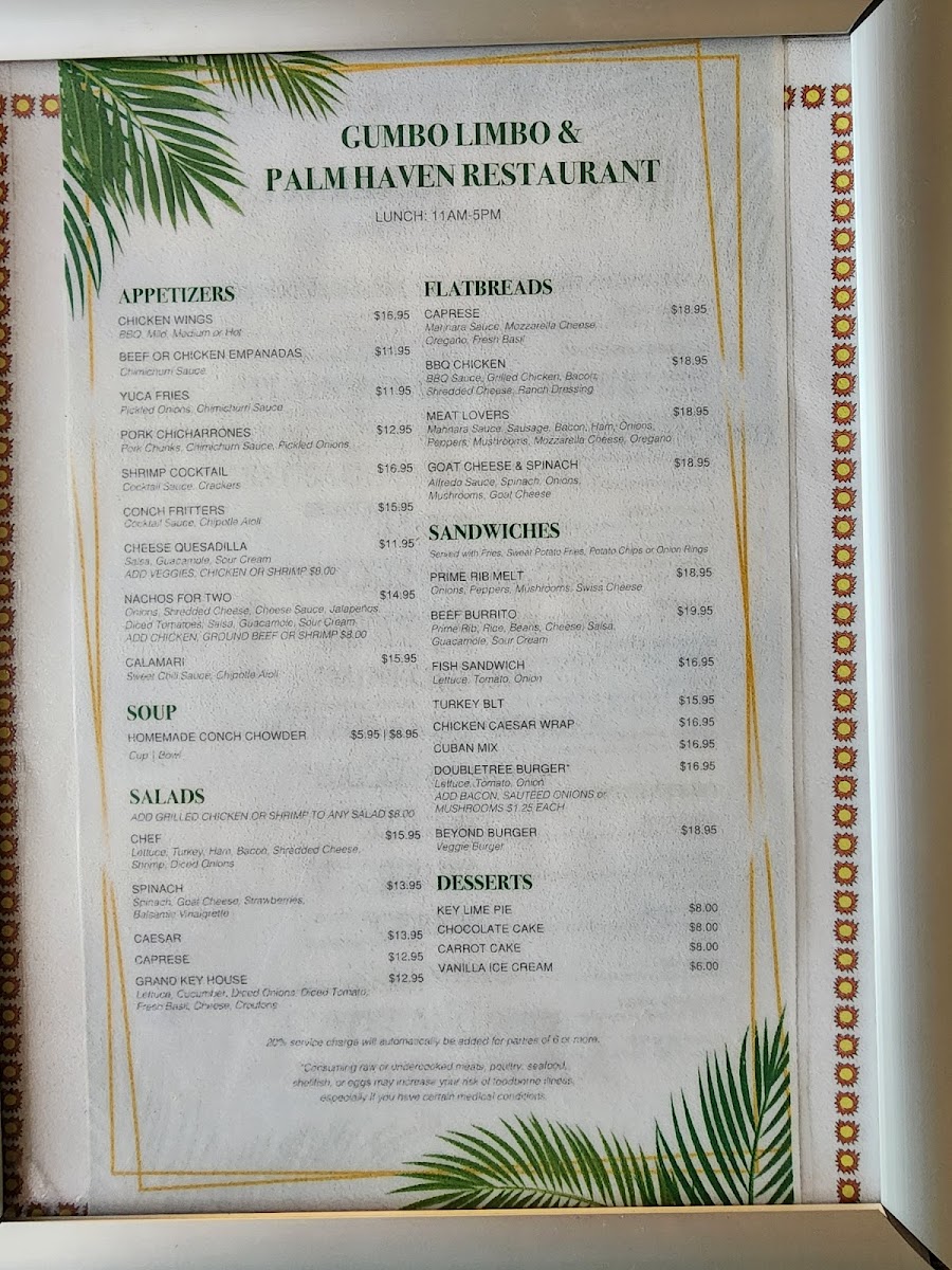 Palm Haven Restaurant offers a menu that reflects the relaxed coastal vibe of Key West, focusing on fresh seafood alongside familiar, comforting dishes. Whether you’re settling in for a casual lunch or a laid-back dinner, the menu strikes a balance between classic favorites and island-inspired choices, making it easy to find something for any time of day.
